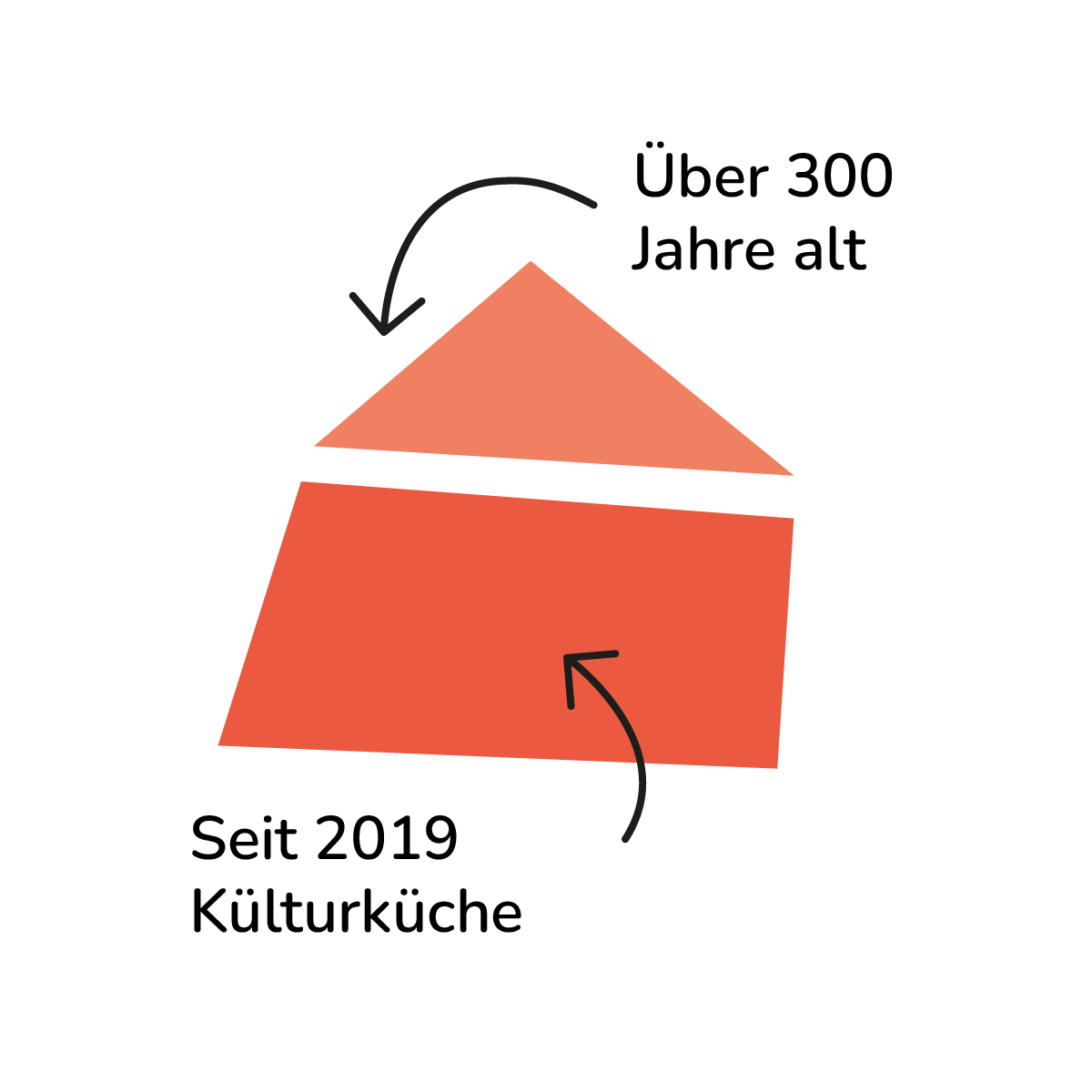 Seit 2019 beleben wir als Kulturküchen-Team diesen besonderen Ort: Wir öffnen ihn für alle, die in Karlsruhe wohnen oder zu Besuch sind. Das über 300 Jahre alte Gebäude hat einen gemütlichen, zweistöckigen Innenbereich mit Gastroküche und vielen offenen Begegnungsräumen. Der Innenhof ist ein grün-bunter Ruhepol mitten in der Innenstadt.
